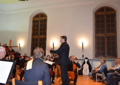 Carl Maria Friedrich Ernst von Weber (1786–1826), l’un des premiers compositeurs significatifs de l’école romantique, considéré par certains musicologues comme étant le trait d’union entre Mozart et Berlioz. La Missa sancta No. 1 en Mi bémol majeur, Op. 75a, est aussi connue sous le nom Freischütz-Messe, car Weber l’a écrite alors qu’il travaillait sur son opéra du même nom. La Messe prend en compte la pratique liturgique de la cour de Dresde. Elle a été très bien accueillie par cette dernière et a beaucoup plu au roi.
